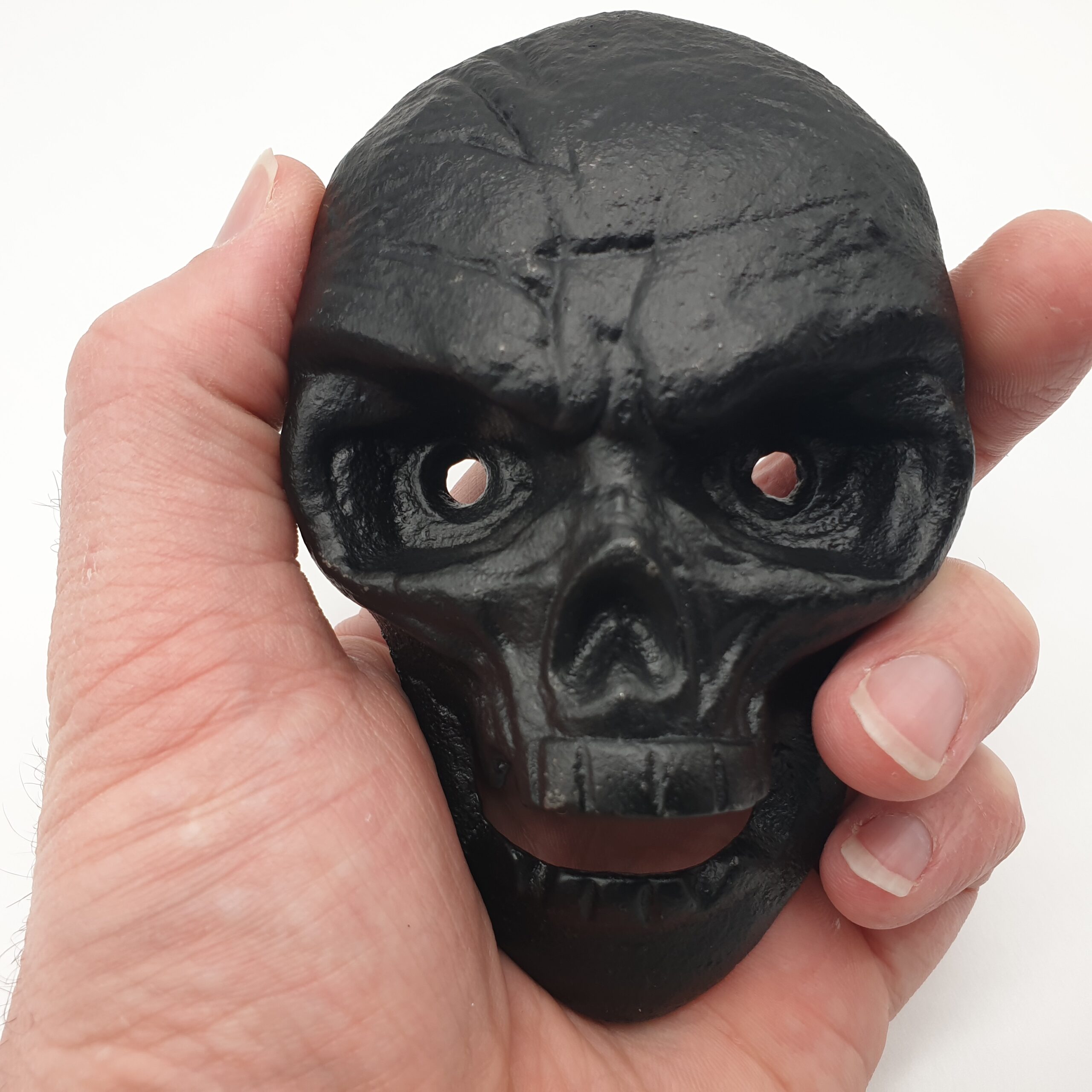 Our skull-shaped bottle openers are made from cast iron for a strong and weighty feel. A great way to pop the cap off a cold beer (or other non-alcoholic beverage!)